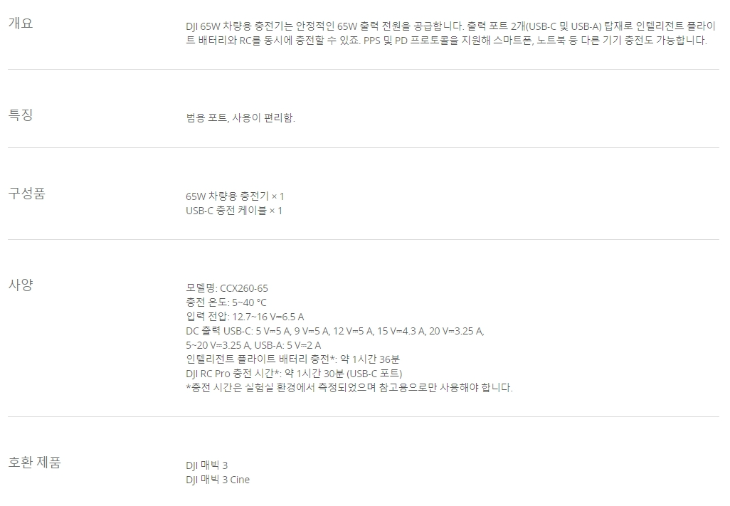 DJI 65W 차량 충전기 매빅3, 매빅3 cine