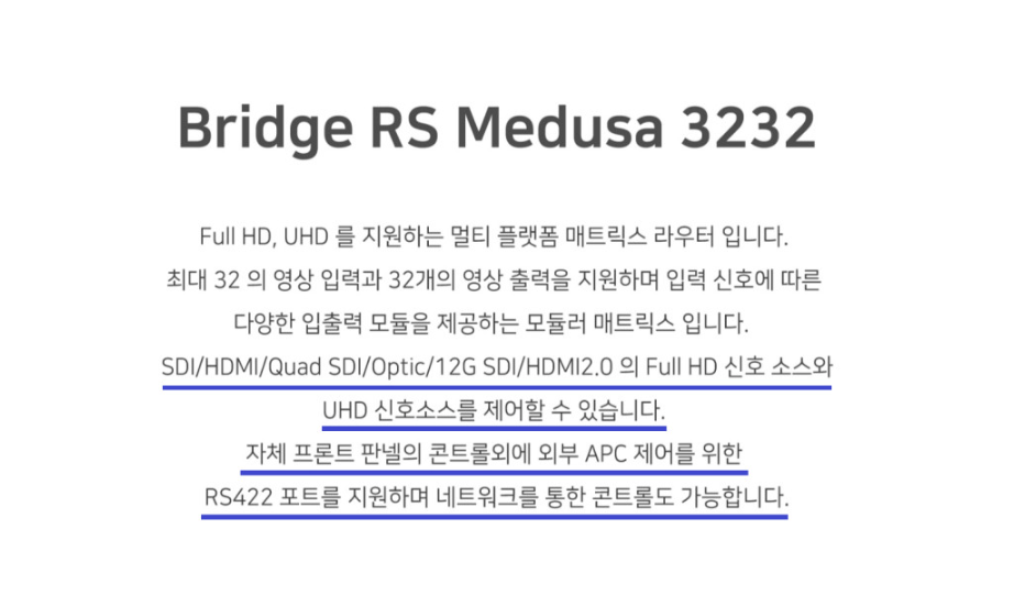 Bridge RS MEDUSA 3232 SDI UHD SDI 32x32 멀티 포맷 매트릭스 스위처