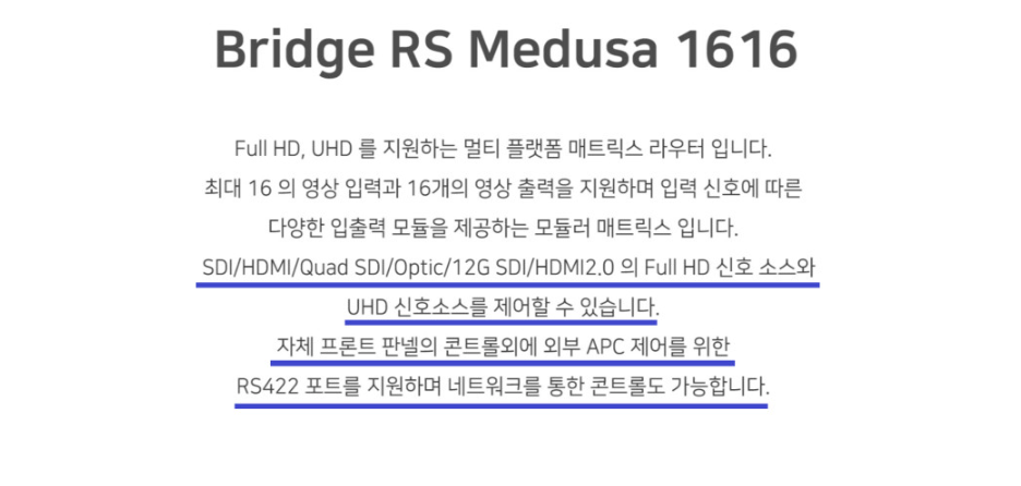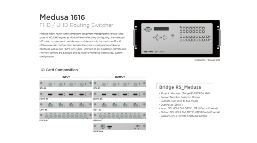 Bridge MEDUSA 1616 UHD SDI / UHD SDI 16x16 멀티 포맷 매트릭스 스위처