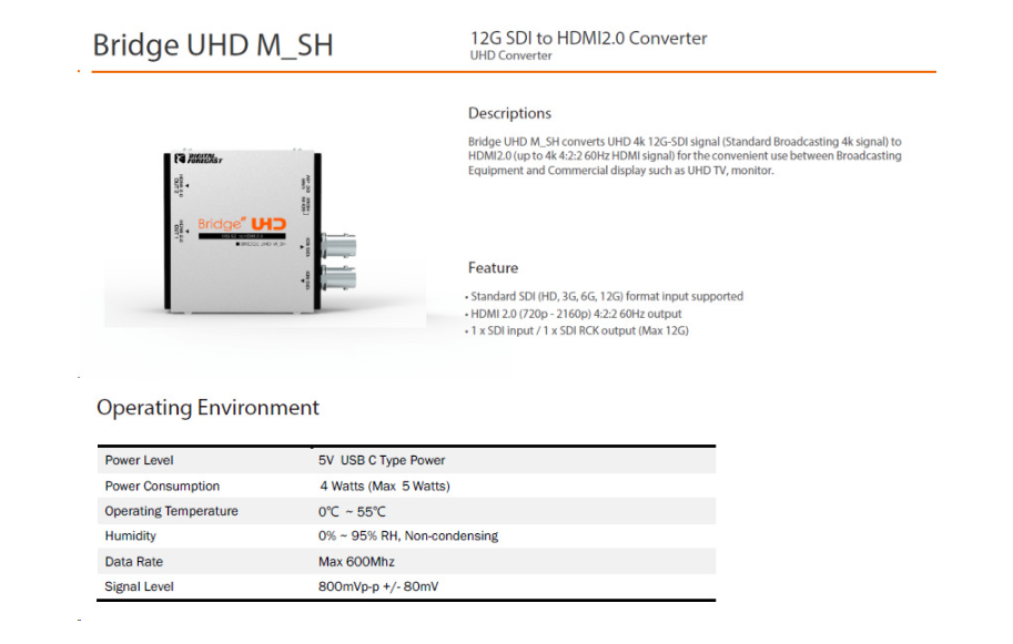 Bridge UHD M SH / 12G SDI to HDMI 2.0 UHD 컨버터