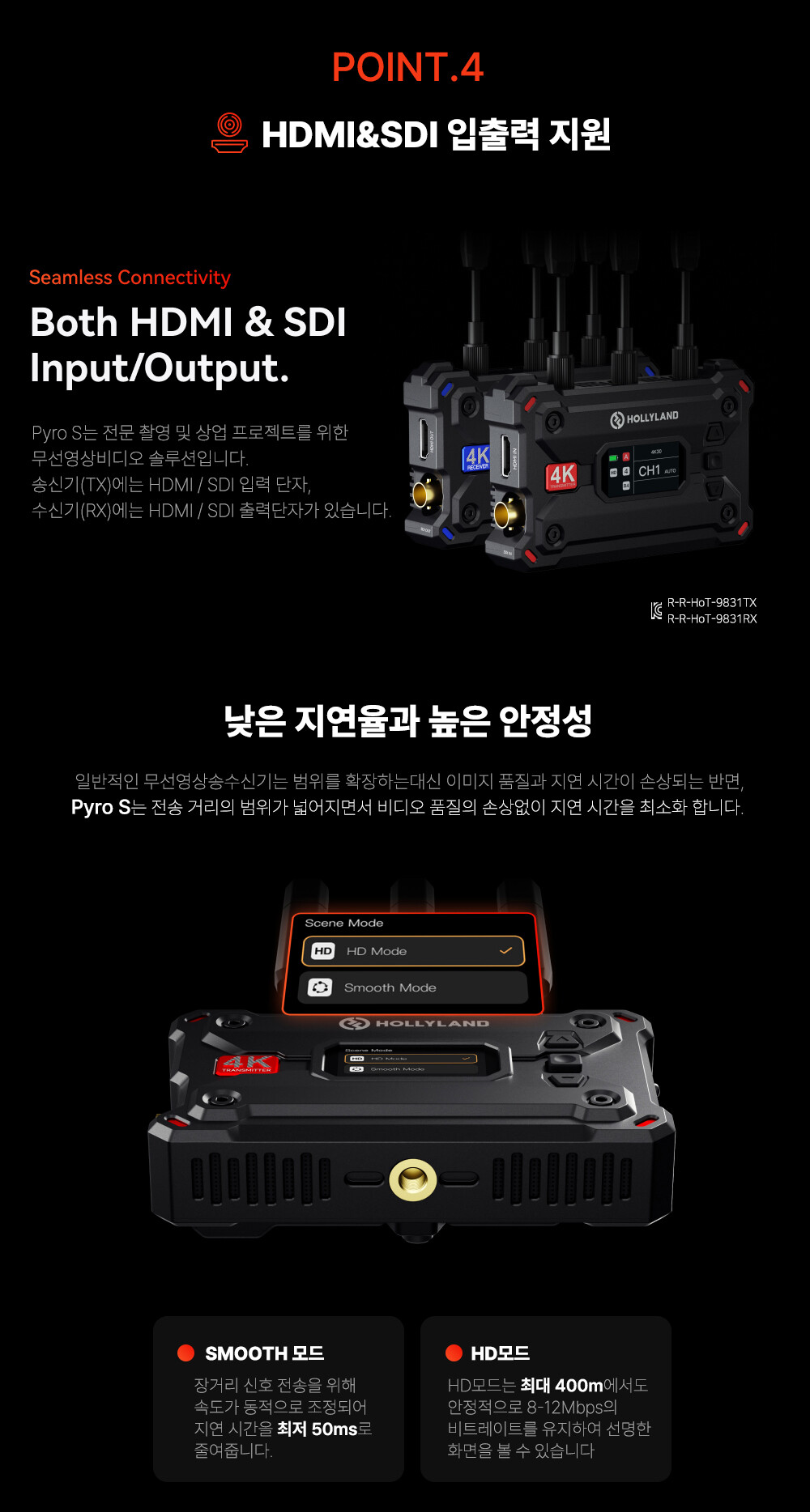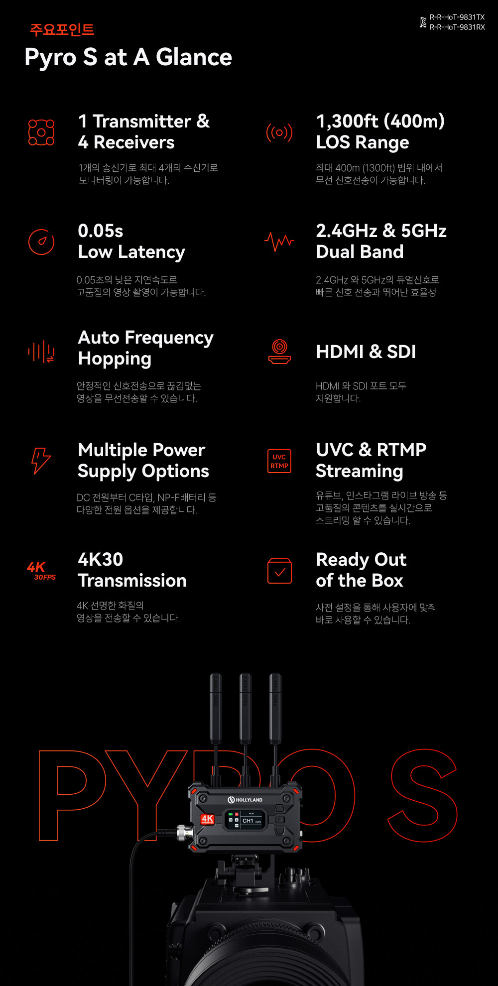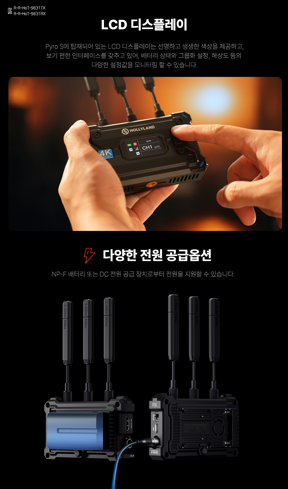 홀리랜드 Pyro S 4K SDI 무선영상송수신기