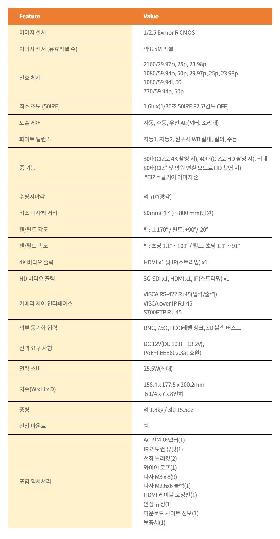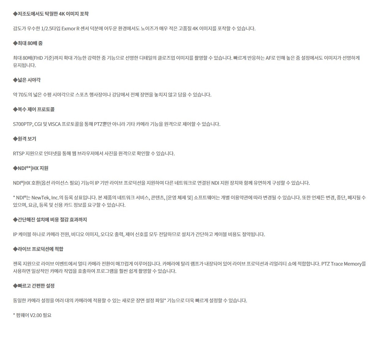 SONY BRC-X400 20배 광학줌 4K PTZ카메라