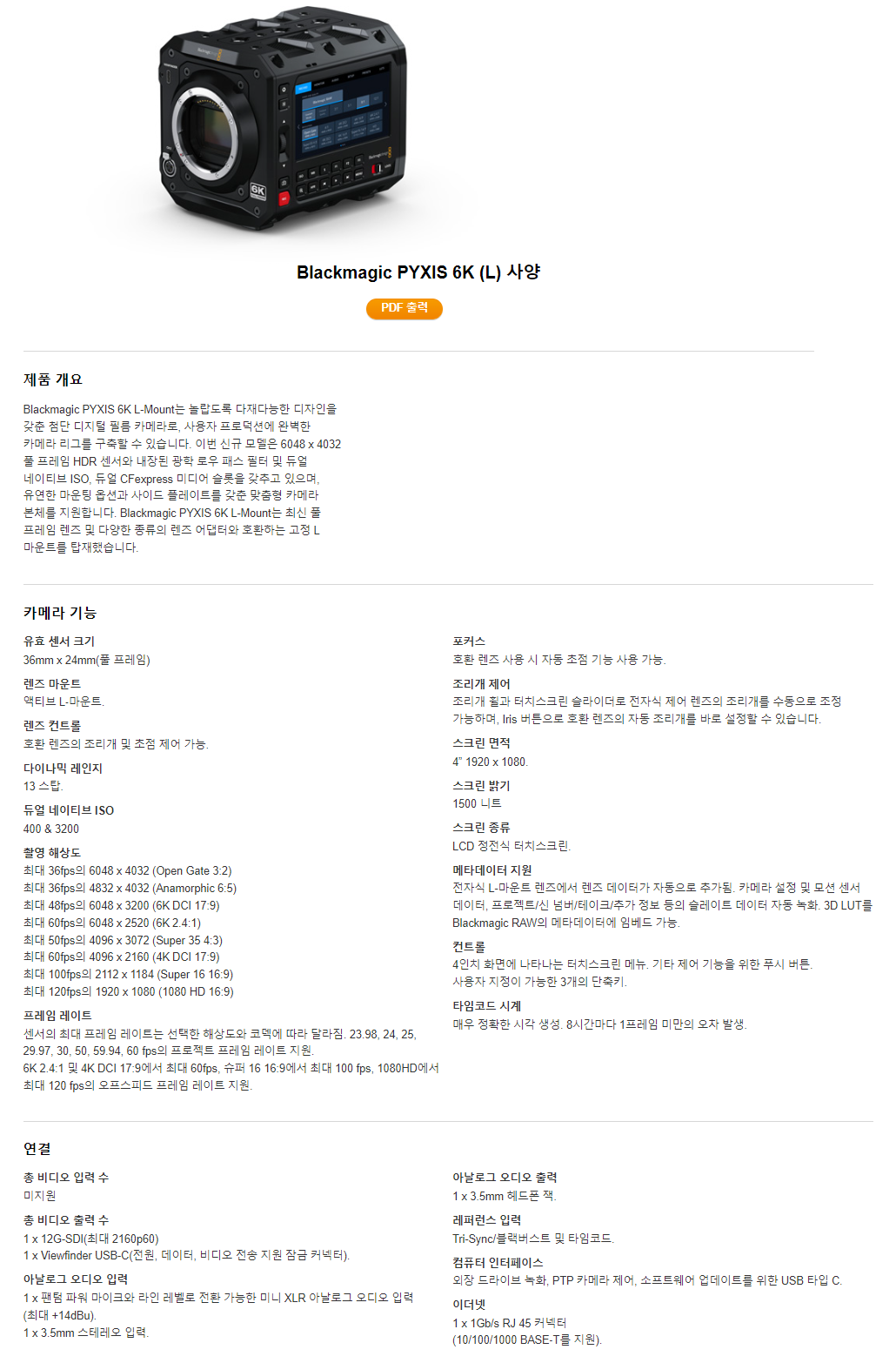 블랙매직 PYXIS 6K L마운트 [신제품]