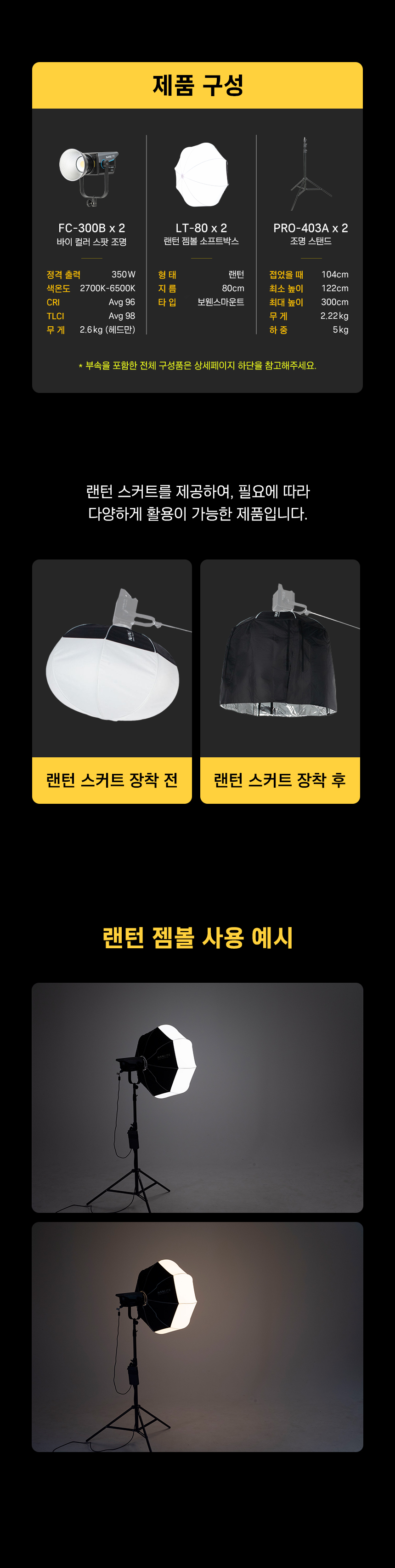 난라이트 FC-300B 랜턴80 젬볼 투스탠드 세트 스튜디오 LED 조명