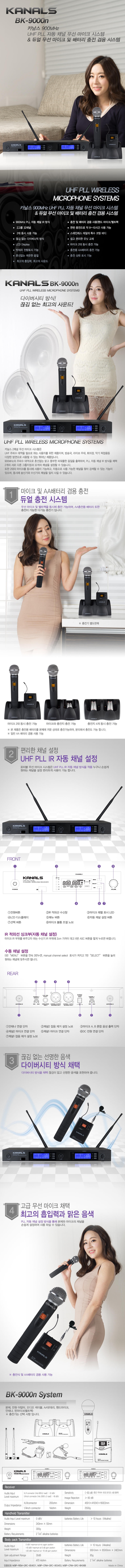 카날스 BK-9000NBB 2채널 충전식 무선 벨트팩 마이크