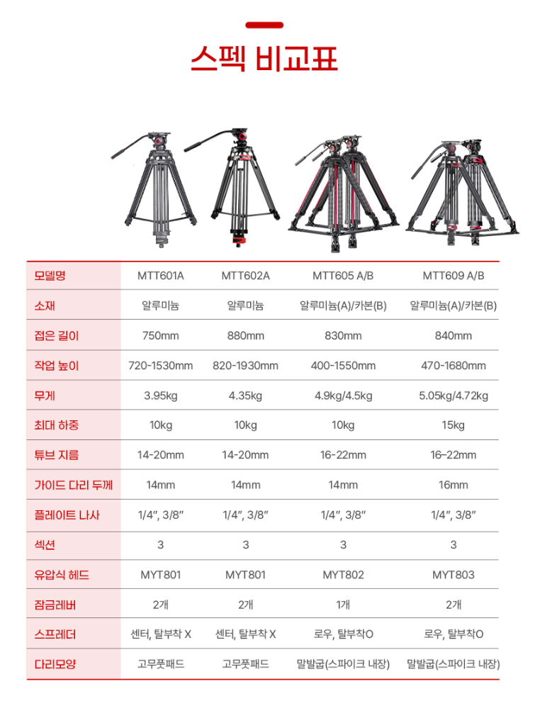 밀리부 MTT605A 삼각대 알루미늄 원터치 잠금 유압식헤드 / 스탠드달리 사은품증정