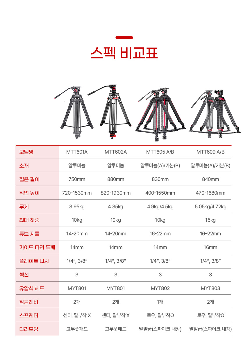 밀리부 MTT601A 삼각대 알루미늄 카메라 방송용 유압식헤드 / 스탠드달리 사은품증정