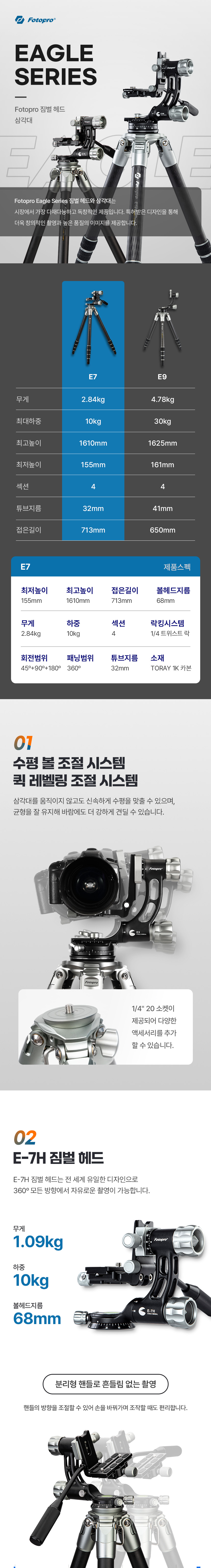 포토프로 Eagle E7 카본 짐벌 헤드 삼각대 최대하중 10kg