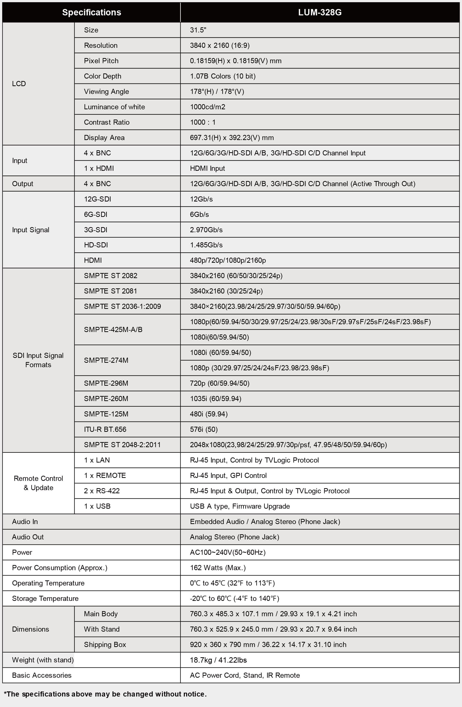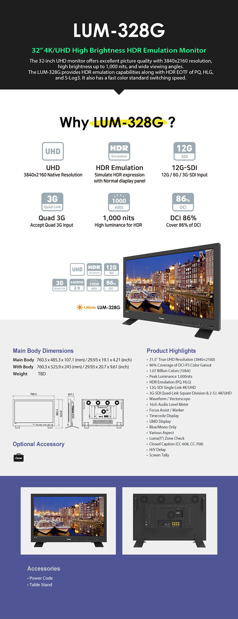 티비로직 LUM-328G 32인치 4K UHD HDR 방송용 모니터