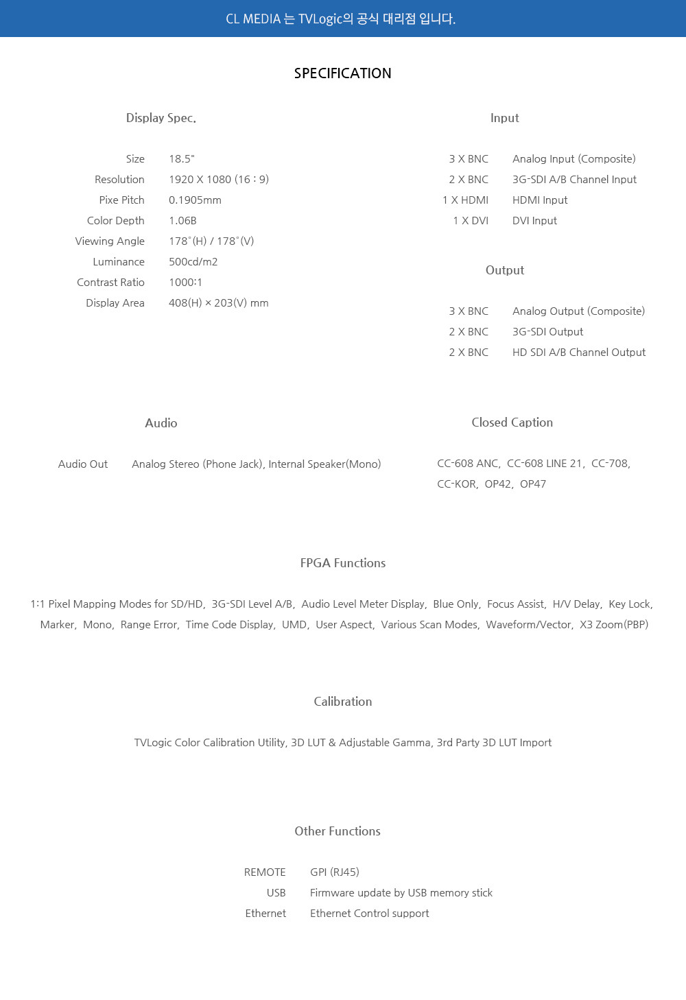 티비로직 LVM-181S 10비트 18인치 방송용 모니터
