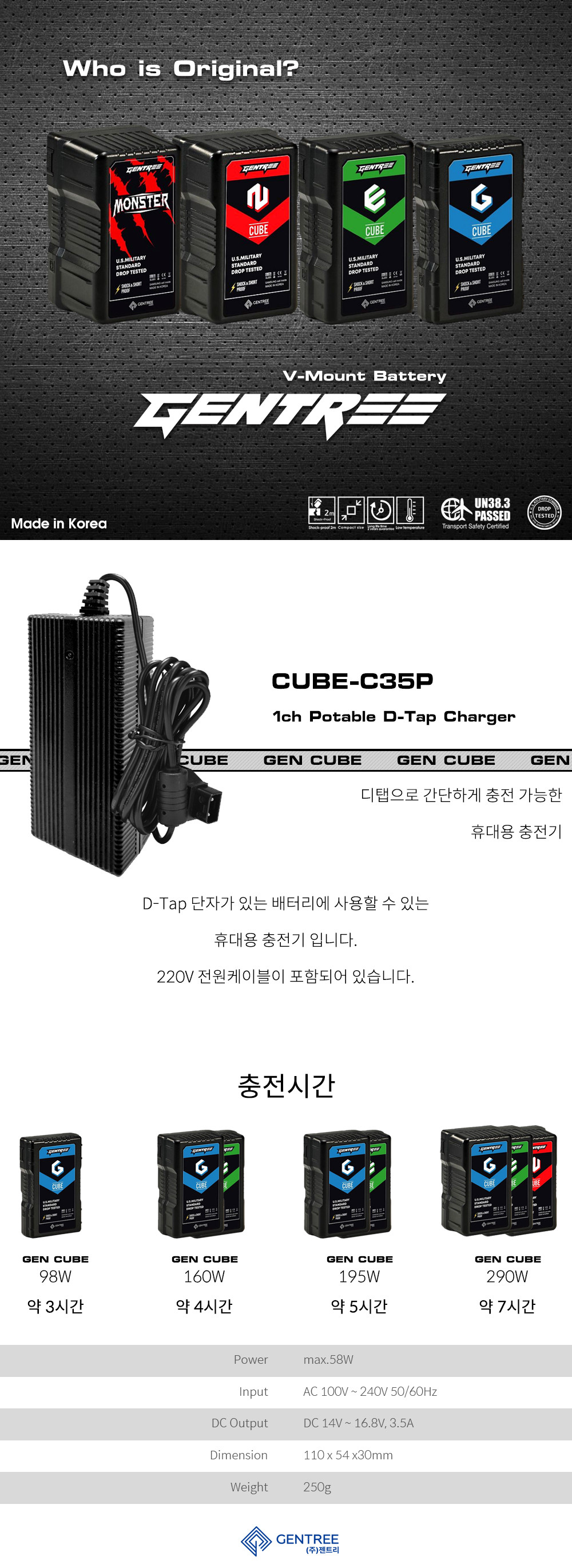 젠트리 CUBE-C35P 1채널 V마운트 휴대용 충전기