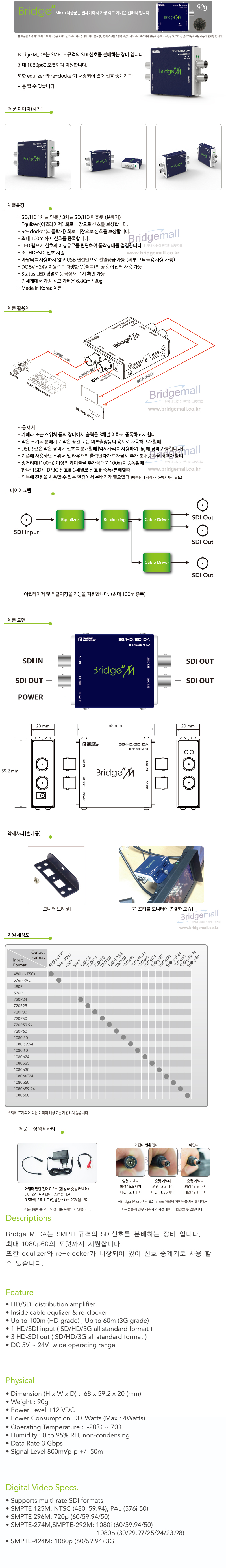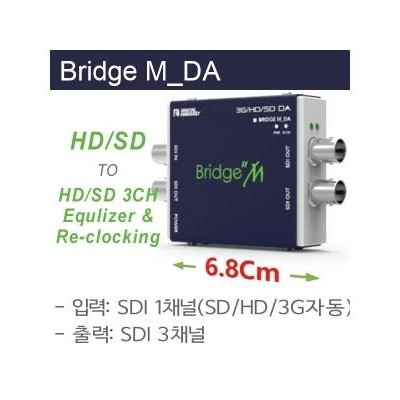 SDI입력신호를 1:3출력 분배 증폭해 주는 마이크로 타입 SDI 분배 리피터입니다.