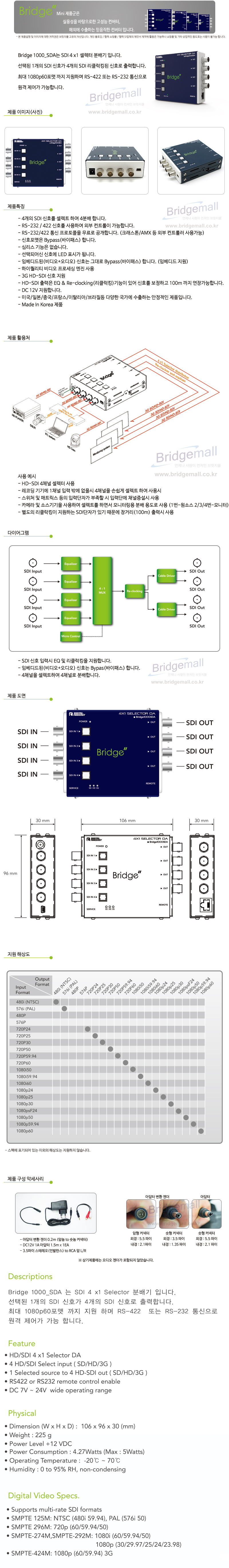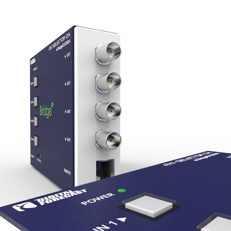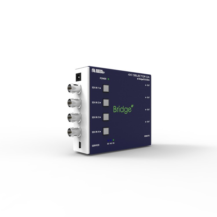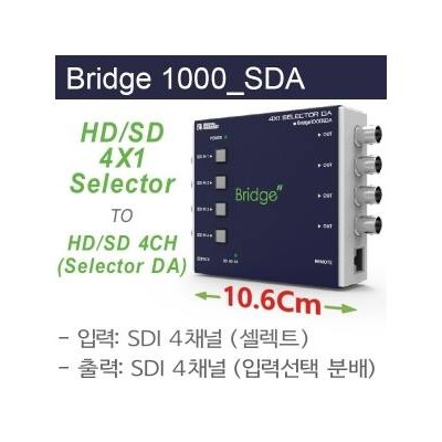 4개의 입력 SDI 신호 중 한 개를 선택하며 4개의 출력으로 분배해주는