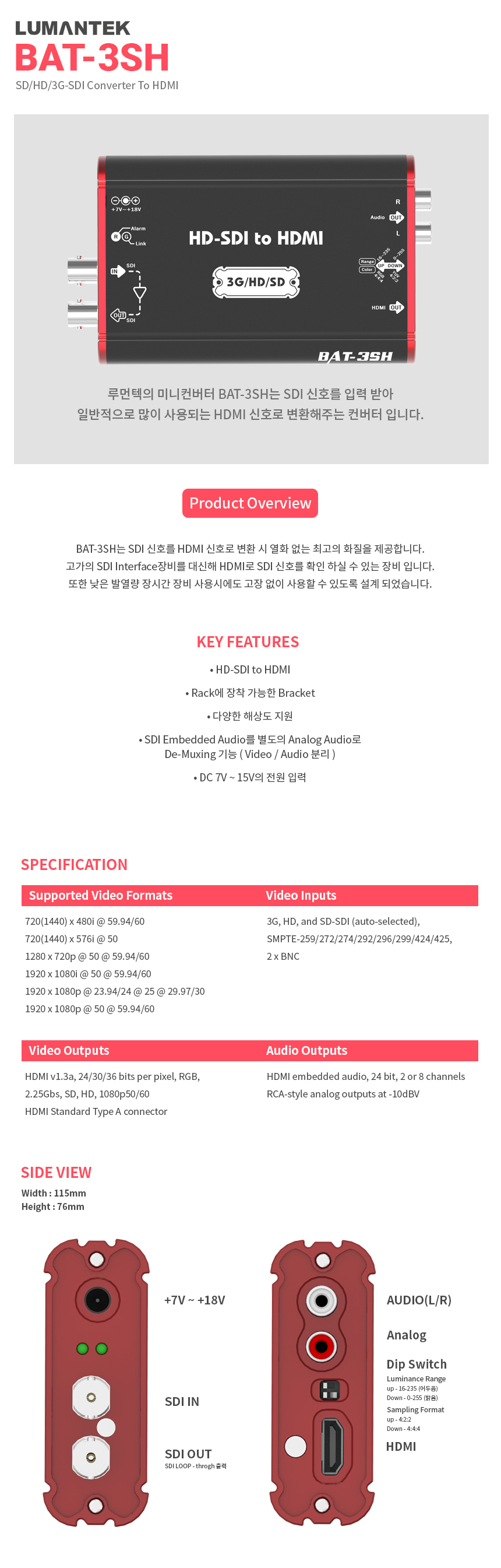 SDI신호를입력받아 일반적으로 많이 사용되는 HDMI신호로 변환해주는 컨버터입니다.