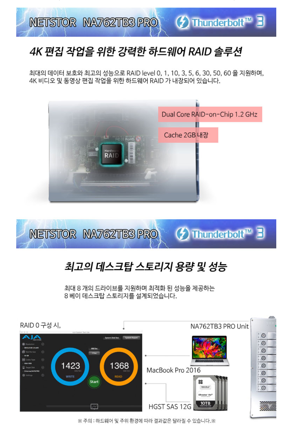 모든 종류의 데이터 저장, 보관 및 실시간 편집을 위해 Thunderbolt™ 3인터페이스는