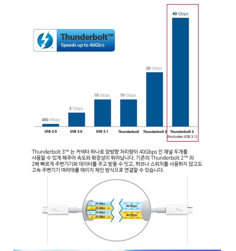 Thunderbolt 2의 2배에 해당하는 최대 2,750MB/s의 데이터 전송 속도를 제공합니다.