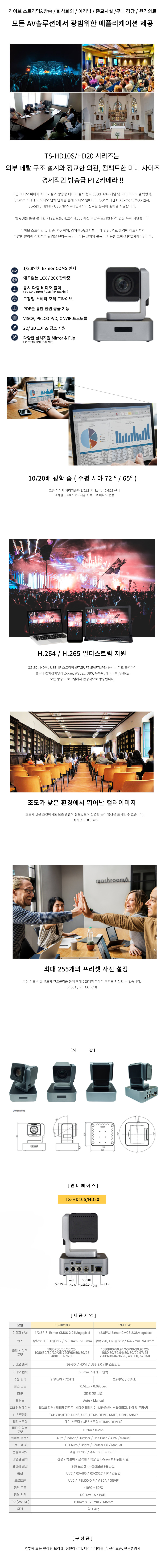 PIXEL TS-HD10S PTZ카메라 광학 10배줌