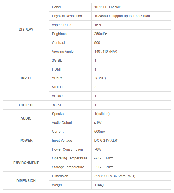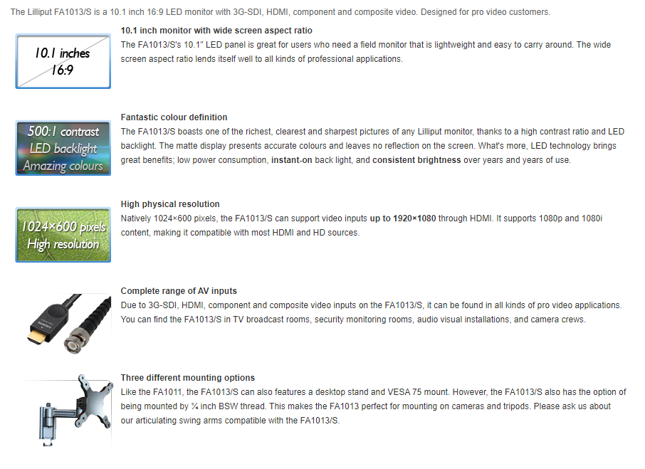 릴리풋 FA1013/S 10.1인치 LED 카메라 모니터