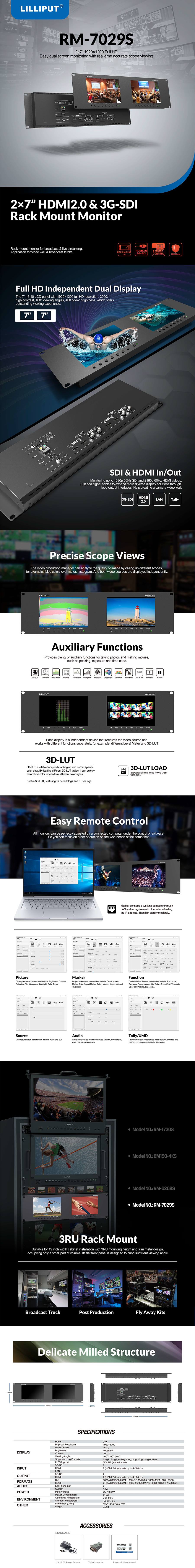 릴리풋 RM-7029S 2 x 7인치 3G HDMI 듀얼 랙 모니터 정품
