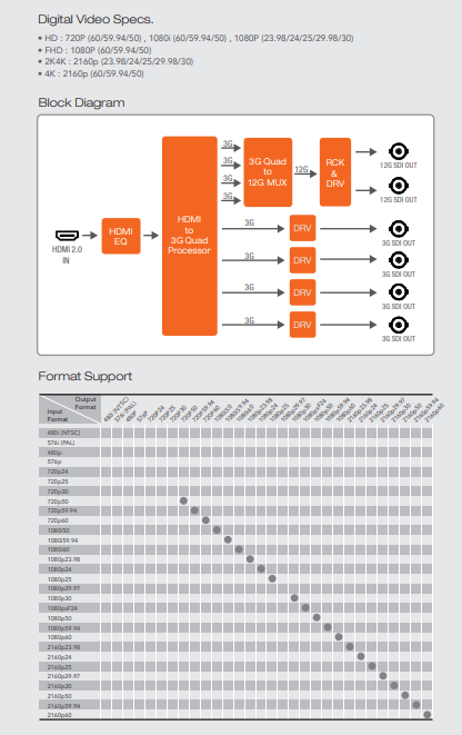 UHD 컨버터 Bridge UHD HS / HDMI 2.0 to 12G SDI with Quad 3G SDI
