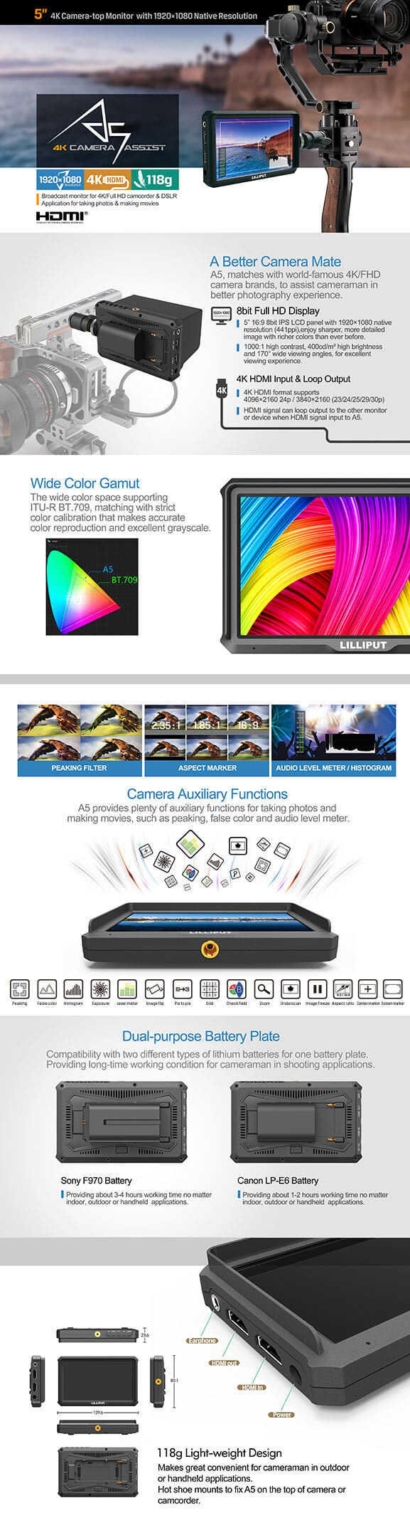 LILLIPUT 릴리풋 A5 5인치 4K 프리뷰모니터