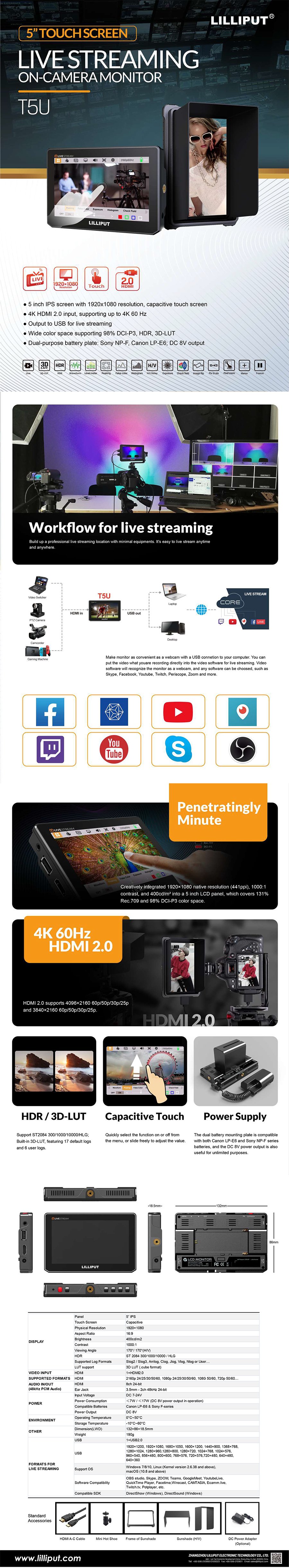 LILLIPUT 릴리풋 T5U 5인치 4K HDMI 터치 모니터