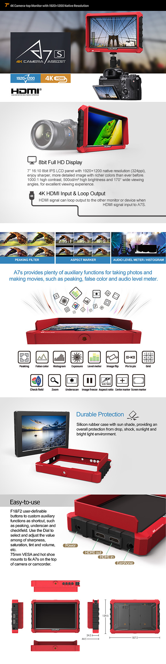 LILLIPUT 릴리풋 A7s 7인치 4K 프리뷰모니터