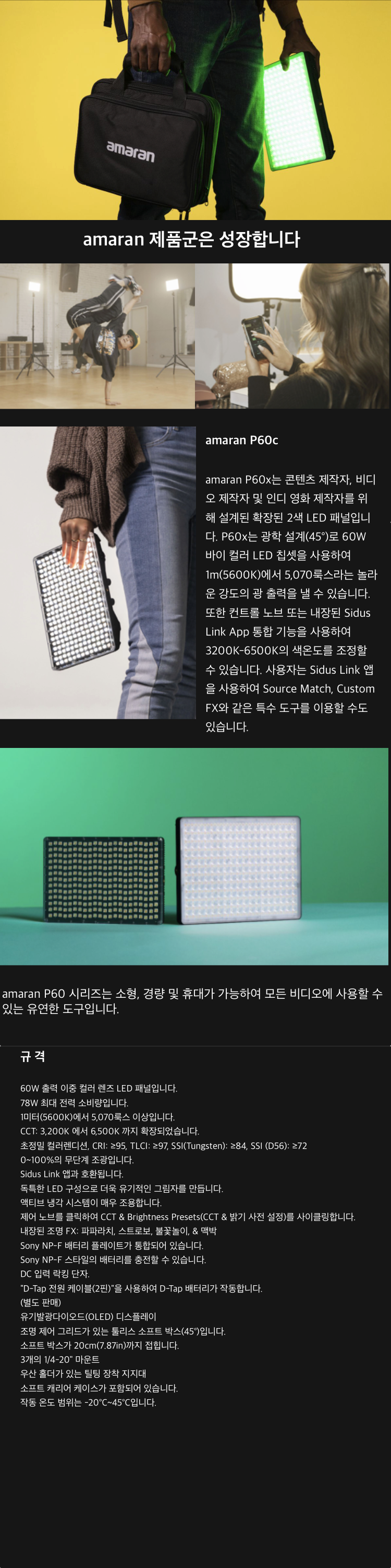 Aputure amaran P60x LED 면발광 유튜브 촬영 조명 라이트 패널