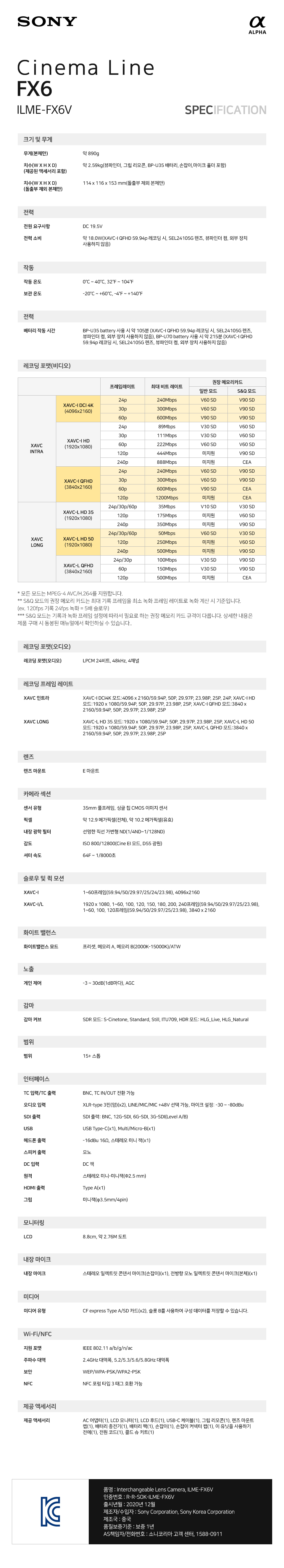 소니 시네마 라인 카메라 ILME-FX6 4K 캠코더